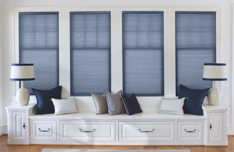 Cellular (or honeycomb) shades also make great blind upgrades. They’re made to trap more heat than normal shades, are easy to use, and offer a ton of options including colors, textures, fabrics and more.